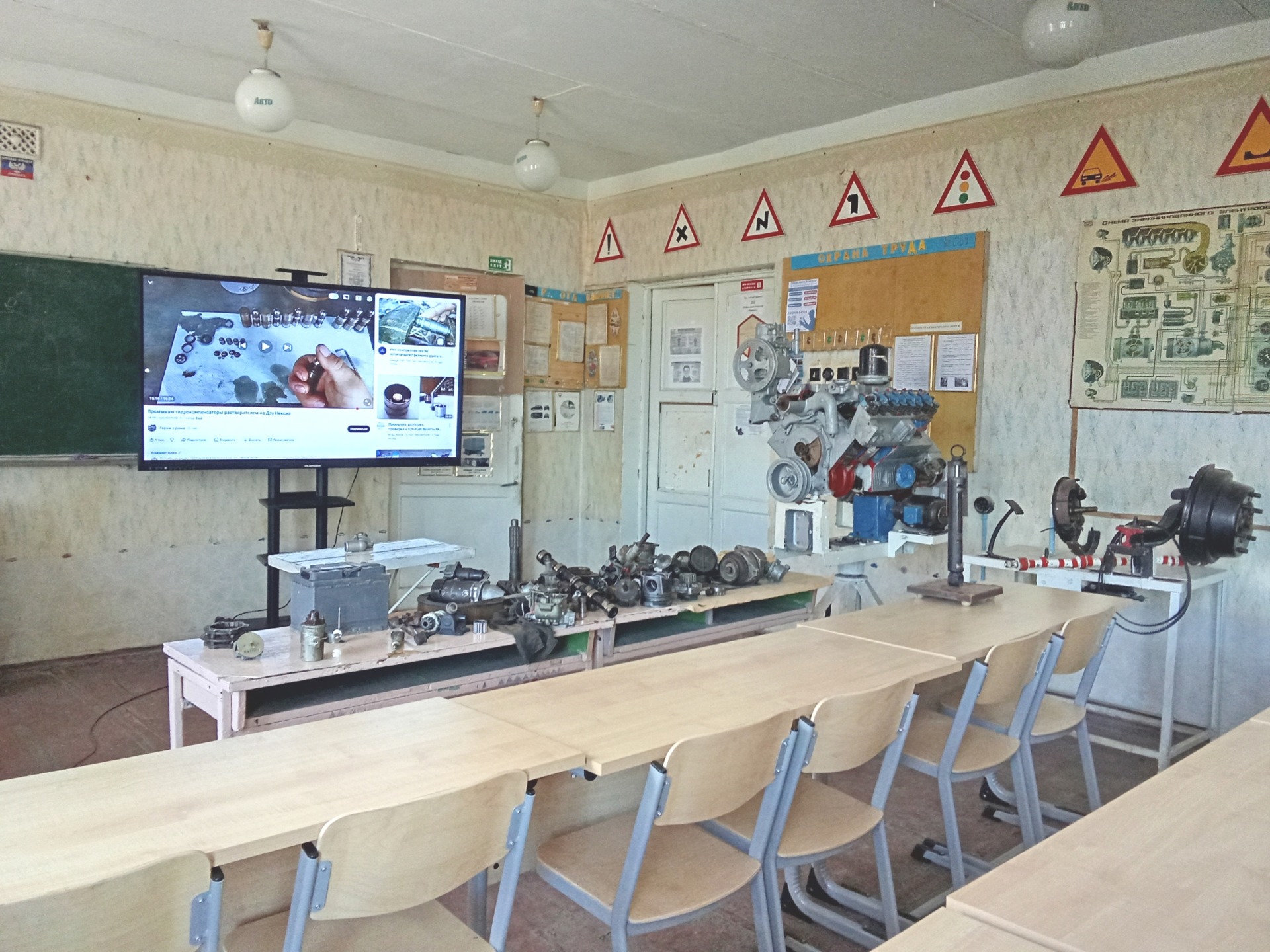 8 учебно-производственных мастерских, 2 компьютерных класса, библиотека, актовый зал, спортивный зал, столовая.